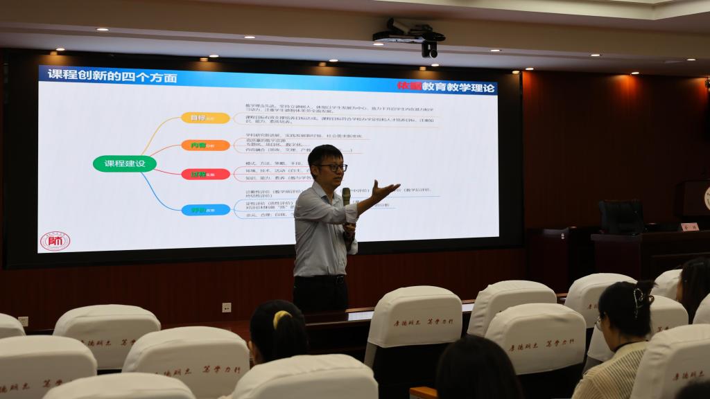 培训中,许亮教授首先从“为什么比、比什么、怎么比”三个维度,深入解读教学赛事,鼓励青年教师积极参与各类教学比赛。他提出,教创赛不仅比拼课程建设基础,课程的特色与创新更是核心竞争力的要素。随后,他分享了自己在教创赛实践中总结的通用思路以及课程创新报告的撰写框架,并结合具体案例,细致讲解教创赛各环节的注意事项与汇报技巧。他强调,新时代背景下,传统教学方法与手段已难以满足需求,引入人工智能等新方法、融入教学新思路,才是激发学生学习兴趣的关键。